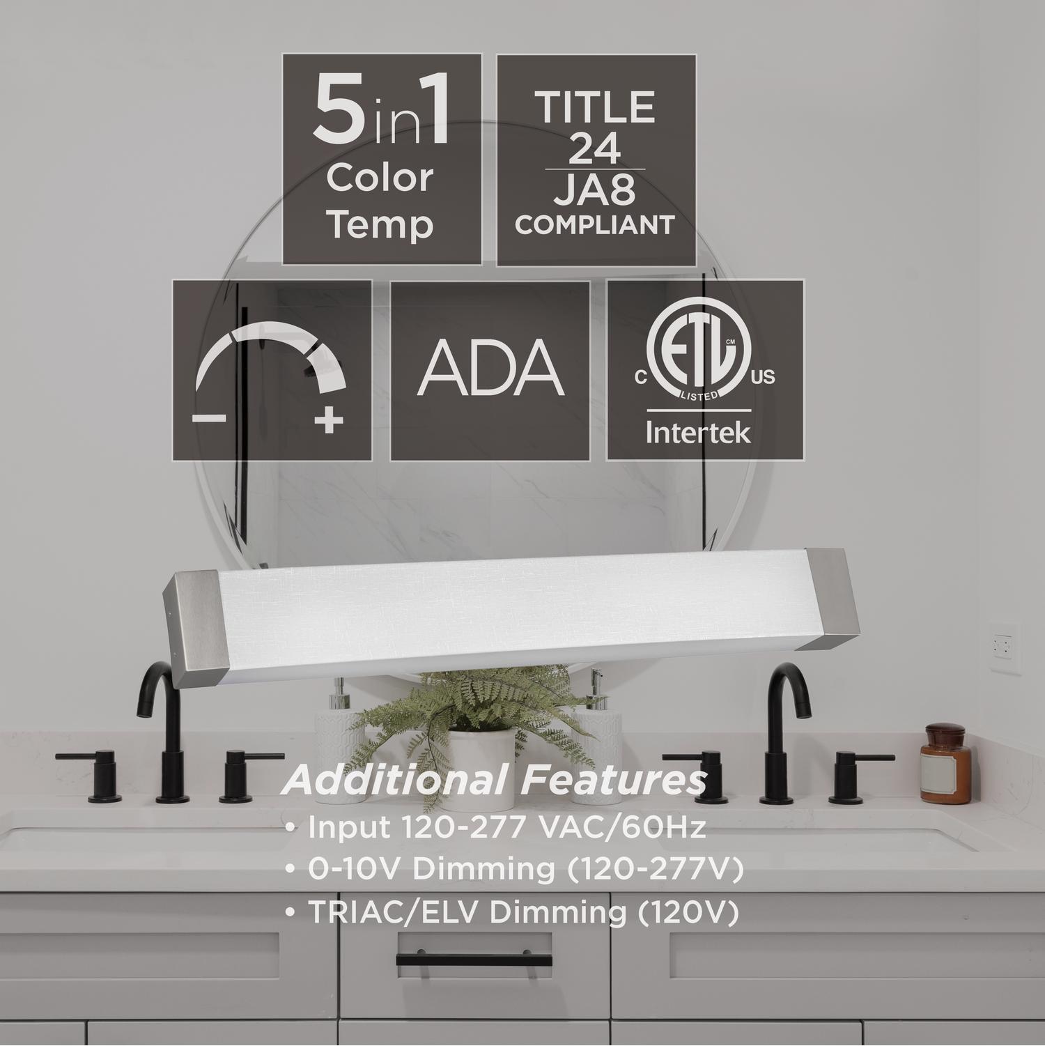 | ALV4905LAJUDSN | Satin Nickel | 2700K/3000K/3500K/4000K/5000K | 120-277V | Title 24, 5-in-1 CCT, cETLus |